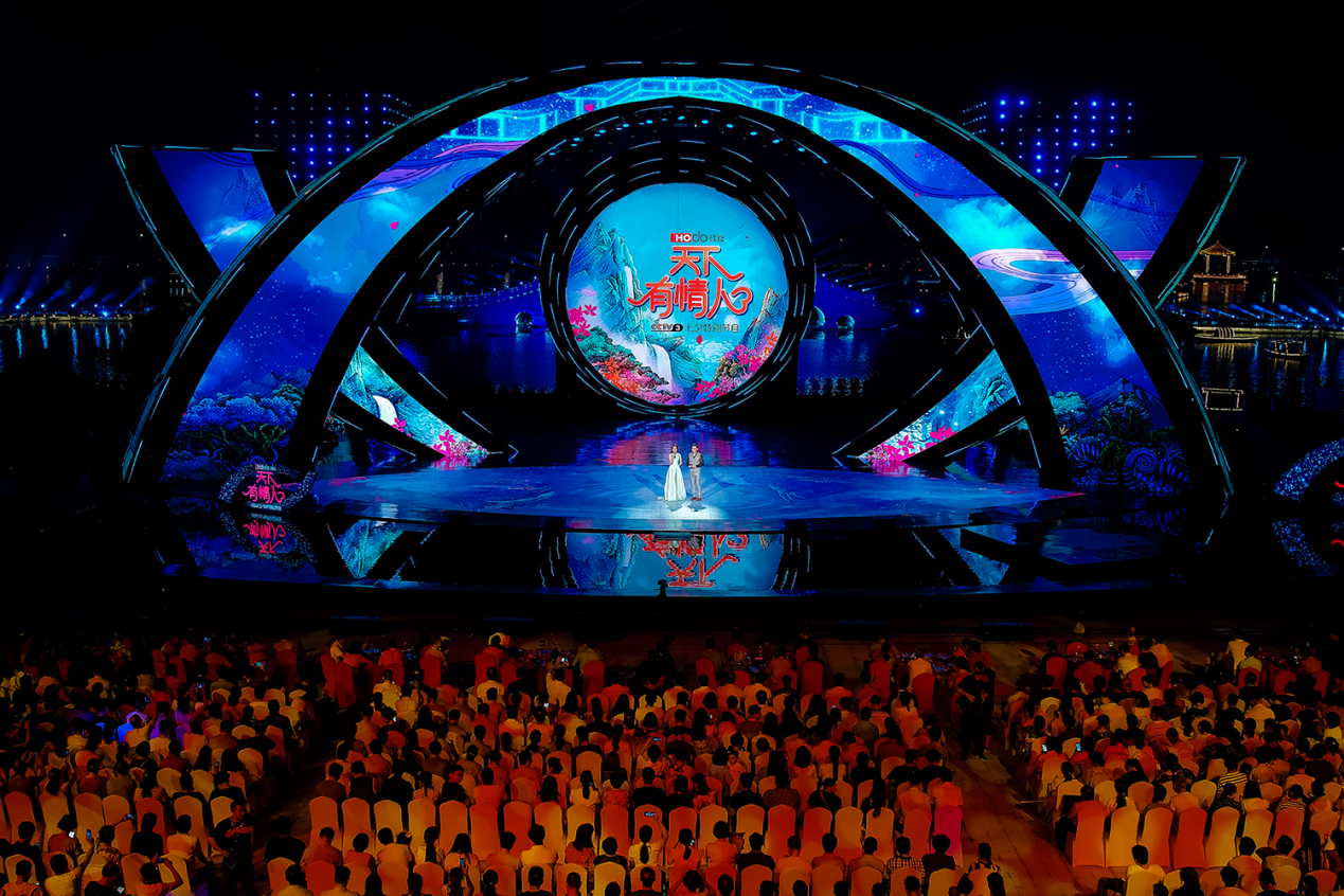 ? ? ? ? 在今年紅豆七夕節二十周年之際,這臺一貫保持高水準制作的晚會,不負眾望,再次走進陜西西咸新區昆明池和江西新余仙女湖,進行“雙城”實景錄制,將兩地秀美的自然風光納入晚會舞美設計當中,在歌曲、舞蹈、相聲等傳統晚會的框架外,輔以更多當下新鮮的視聽元素,包括影視化拍攝、歌舞劇表演、直播帶貨等,將整場晚會用短片串聯起來,以故事推動晚會進程,完美呈現“此時 醉良辰”、“此夕 最相思”、“此生 共相守”等頗具中國風的三大篇章內容。現場舞臺還將融入央視媒體線上發起的紅人舞動挑戰,并以虛擬與現實的時空交錯,再現大唐盛世等。