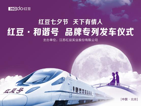 在8月9日七夕節(jié)當(dāng)天,紅豆男裝將在北京南站舉行“紅豆?和諧號”品牌專列發(fā)車儀式,以高鐵為鵲橋,牛郎織女在列車上演繹鵲橋相會大片,把愛與感動傳遞開來,從帝都開往魔都的列車將再一次詮釋新時代的鵲橋相會。