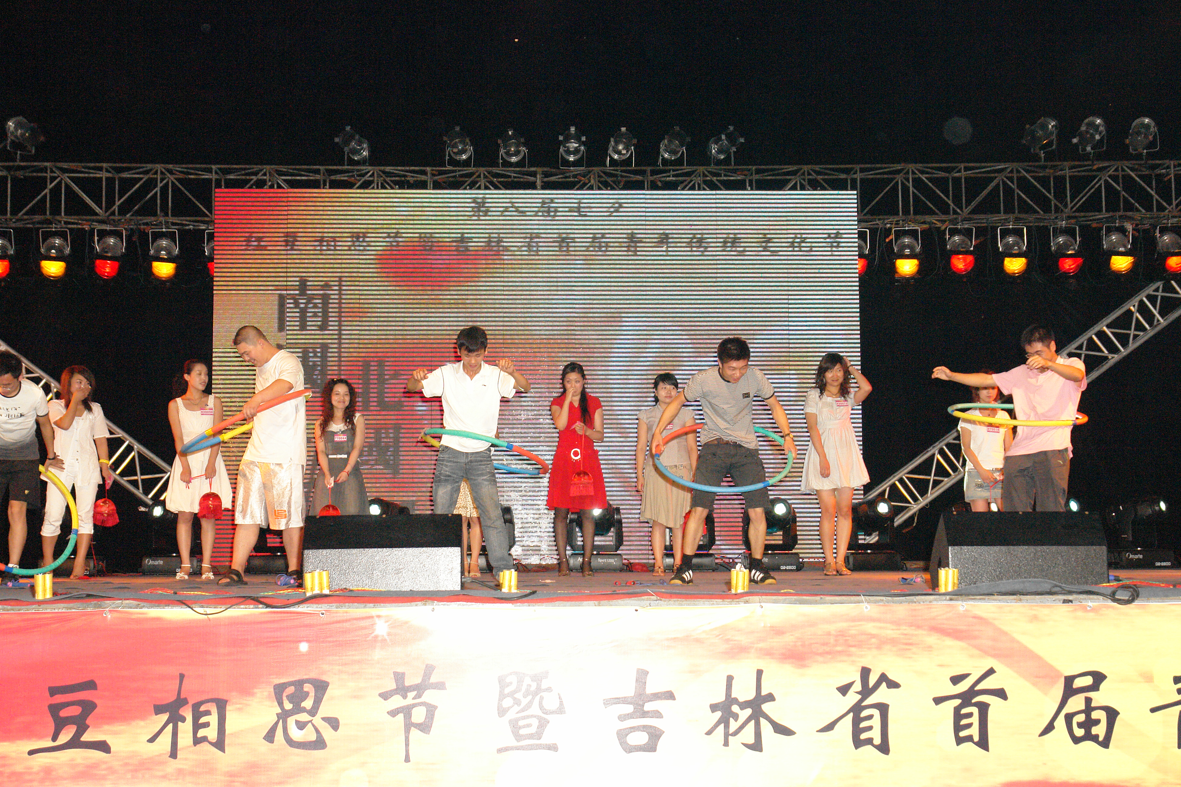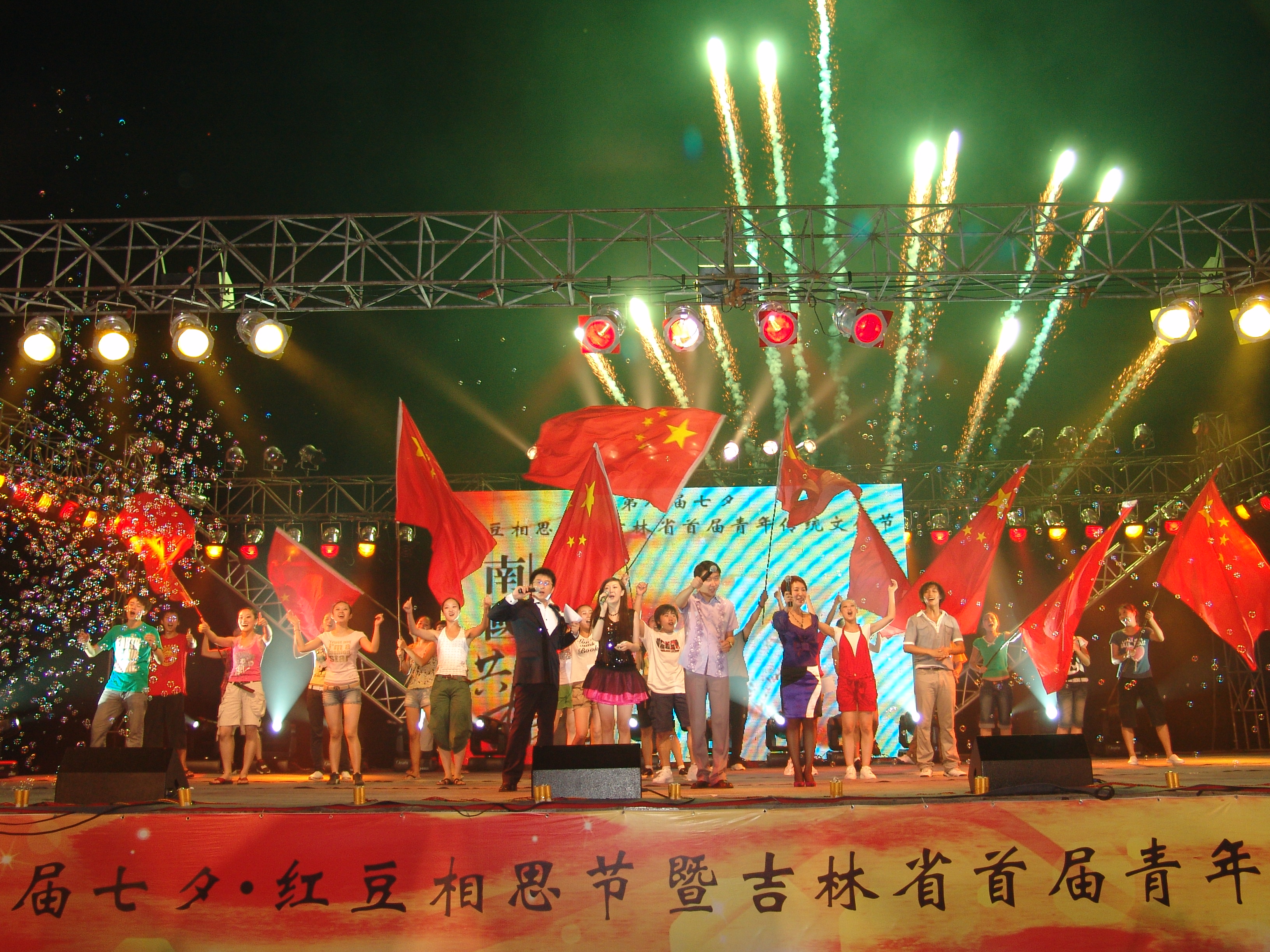傳統(tǒng)七夕節(jié)(8月7日)這一天晚上,長(zhǎng)春市文化廣場(chǎng)歌聲陣陣,音樂滿天,到處可見心形的氣球、鮮紅的玫瑰,一盞盞心愿燈緩緩升起,這里正在舉辦第八屆七夕·紅豆情人節(jié)暨吉林首屆青年傳統(tǒng)文化節(jié)。首推七夕·紅豆情人節(jié)的周耀庭在這次活動(dòng)中高興地說“紅豆集團(tuán)原本計(jì)劃要用5個(gè)5年的時(shí)間推廣七夕節(jié),但現(xiàn)在看來這個(gè)時(shí)間要提前了?!?這次活動(dòng)由共青團(tuán)吉林省委、吉林省青年聯(lián)合會(huì)、紅豆集團(tuán)、吉林電視臺(tái)、城市晚報(bào)社、長(zhǎng)春交通之聲共同舉辦,共青團(tuán)吉林省委書記謝忠?guī)r,九屆、十屆全國(guó)人大代表、紅豆集團(tuán)董事局主席周耀庭等領(lǐng)導(dǎo)出席了這次活動(dòng)。文化廣場(chǎng)上人山人海,有20000多名長(zhǎng)春市民積極自愿參加這次活動(dòng),快樂的度過了美麗的七夕。