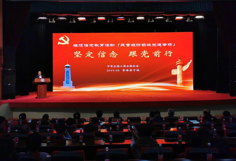 為深入開展“不忘初心、牢記使命”主題教育,全國工商聯于8月24日在青海省海北州“兩彈一星”基地舉辦了非公有制經濟人士理想信念教育活動(民營經濟領域黨建專場)。會議組織與會人員參觀了原子城紀念館、原子城舊基地設施,聽取了“兩彈一星”精神宣講報告。十三屆全國政協副主席、全國工商聯主席高云龍出席會議,中央統戰部副部長、全國工商聯黨組書記徐樂江到會講話,全國工商聯黨組成員、副主席李兆前主持會議。中國民間商會副會長、紅豆集團董事局主席兼CEO周海江等4位有代表性的黨員企業家為400多為嘉賓作了“堅定信念、跟黨前行”主題演講。