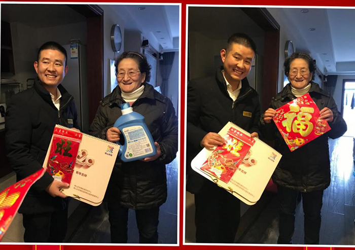 一大早,物業(yè)管家、黨員業(yè)主代表、社區(qū)志愿者便帶著年味十足的對聯(lián)、福字貼、大米、食用油等年貨禮品,上門探望了小區(qū)里的獨居老人、低保戶、困難戶以及模范家庭,一句“新年快樂”,一陣笑語歡聲,一個暖意十足的握手,彰顯的不僅是來自紅豆物業(yè)最真摯的節(jié)日問候,更見證了紅豆物業(yè)貼心服務(wù)的赤誠。