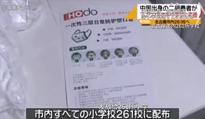 “這是我日本友人發來的視頻,紅豆口罩上了日本電視,而且還有紅豆LOGO的特寫鏡頭”紅豆外貿經理在電話連線中介紹。據小編進一步了解,原來是昨日日本名古屋電視中播了一則新聞:上午,中國出身的藝術大學教授、二胡演奏家張斌,給日本名古屋的小學捐贈了2萬枚紅豆生產的愛心口罩,發放給名古屋市內261所學校,讓學生們可以安心的參加畢業式。愛心捐贈受到了日本中京電視臺的關注,媒體特別進行了采訪報道,受到捐贈的學校相關人員表示“十分感謝為孩子們準備了店里已經脫銷的口罩!”