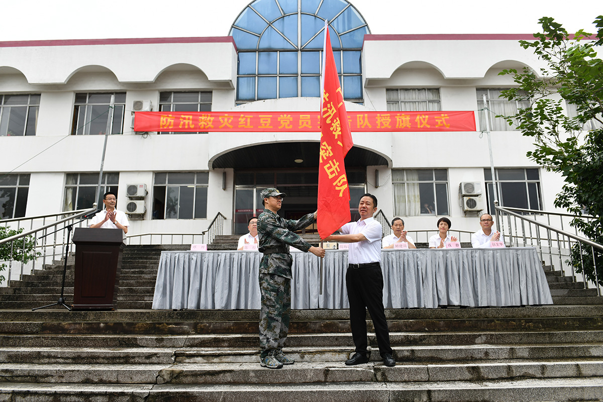 黨有號召,紅豆必應;國有需要,紅豆必有為。7月19日,紅豆黨委第一時間組織學習了中央組織部文件,并作出了成立防汛救災黨員突擊隊的決定。7月20日,紅豆集團人武部第一時間舉行防汛救災黨員突擊隊授旗儀式,集團黨委書記周海江向突擊隊授旗,100名黨員突擊隊向黨旗莊嚴宣誓。
