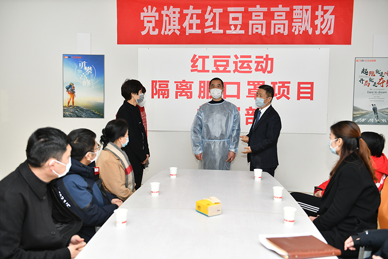 “生產(chǎn)隔離服,時(shí)間緊,任務(wù)重,關(guān)系到疫情防控效力和一線醫(yī)護(hù)人員以及人民群眾生命安全,容不得絲毫猶豫和懈怠,黨員干部首先成立突擊隊(duì),要率先發(fā)揮黨員的先鋒模范作用,擔(dān)起這個(gè)重任!”紅豆運(yùn)動(dòng)裝公司黨支部書記、總經(jīng)理高品亞作為隔離服生產(chǎn)線指揮領(lǐng)導(dǎo)小組組長,提出隔離服生產(chǎn)要求。