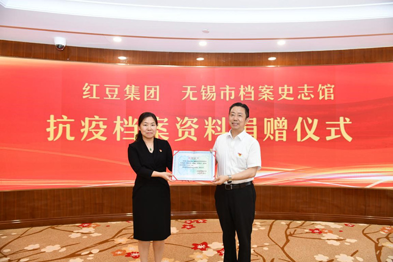 無錫市檔案史志館系統(tǒng)、深度、精準(zhǔn)地挖掘開發(fā)檔案史志資源,不斷提升新形勢下檔案史志工作水平,服務(wù)發(fā)展大局、服務(wù)社會民生,為無錫經(jīng)濟(jì)的高質(zhì)量發(fā)展作出了積極貢獻(xiàn)。紅豆集團(tuán)作為全國先進(jìn)基層黨組織,在疫情防控期間,凝聚強(qiáng)大力量,積極支持一線抗疫,勇?lián)?zé)任,為抗疫前線提供支持與保障。此次,雙方舉行檔案史料相互捐贈,既是對這場戰(zhàn)疫的永恒銘記,也是對這場人民抗疫戰(zhàn)爭的最好致敬。