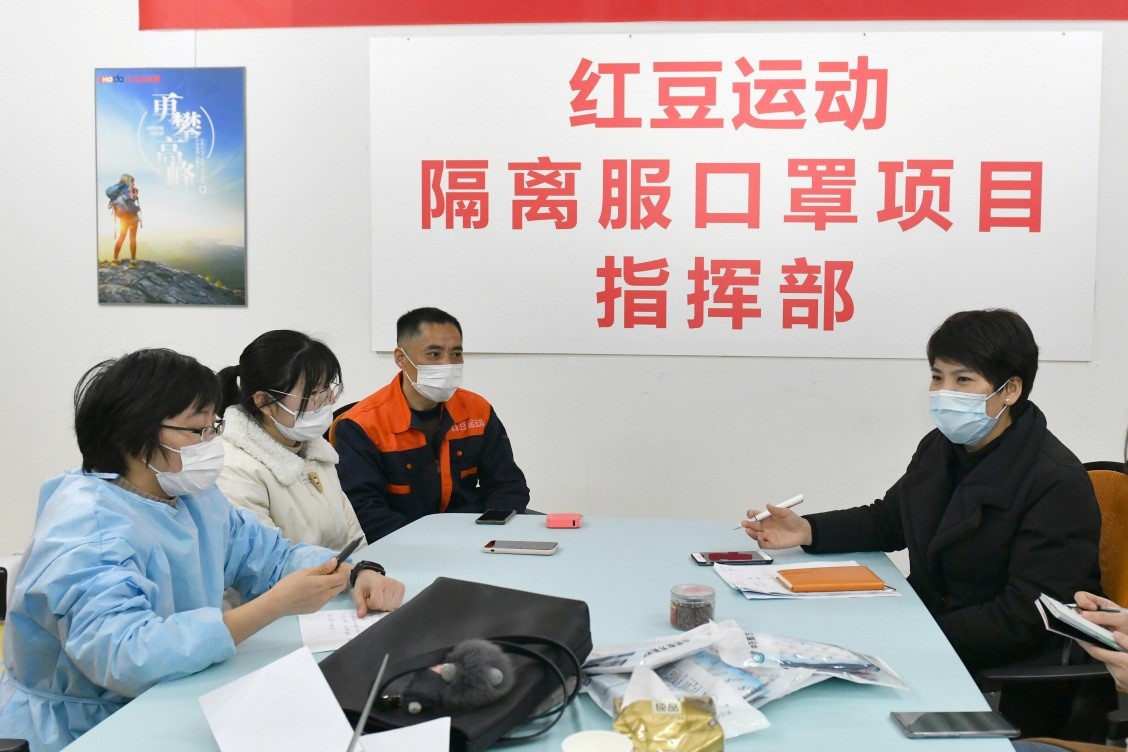? ? ? ? ?缺乏相關(guān)生產(chǎn)經(jīng)驗、特殊時期材料設(shè)備一件難求、投入生產(chǎn)需要相應(yīng)醫(yī)療許可證……面對接踵而來的重重考驗,在高品亞的帶領(lǐng)下,紅豆運動裝公司黨員團隊調(diào)動一切資源,火速采購面料設(shè)備,手動裝卸;連夜裝修配套生產(chǎn)車間;24小時監(jiān)控口罩設(shè)備運轉(zhuǎn)與衛(wèi)生達標(biāo)問題,生產(chǎn)的口罩達成0投訴;運用服裝工藝方面的專業(yè)知識,在不具備超聲波粘合設(shè)備的條件下,高品亞采用拷邊技術(shù)進行替代實驗,并成功取得隔離衣的生產(chǎn)資質(zhì)……